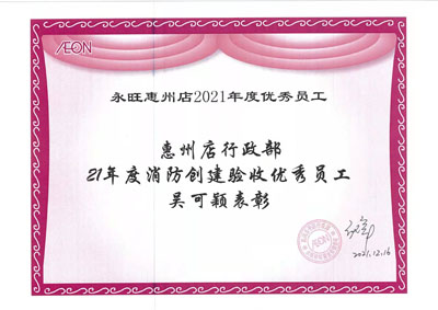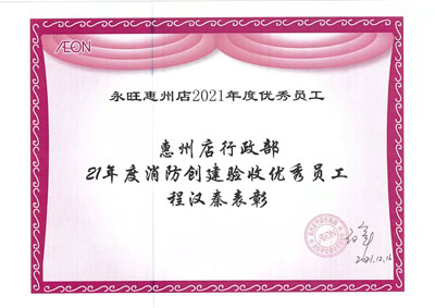 永旺華南商業有限公司惠州東平店致信表揚我司鐵保宏泰深圳保安公司安保員王永春、程漢秦、吳可穎三位同志在日常安保工作中能積極做好本職工作,盡職敬業,服務意識強,與客戶公司管理團隊配合度良好。