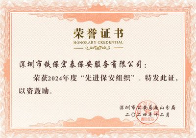熱烈祝賀我司鐵保宏泰深圳保安公司榮獲2024年度深圳市南山區先進保安組織。