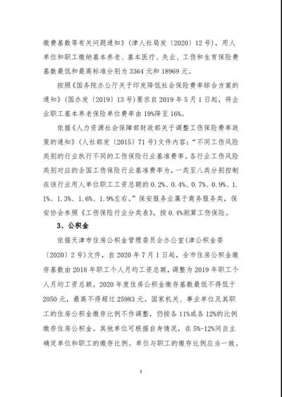 天津市保安協會發布《2020年度天津市保安服務普通保安員法定最低成本標準測算表》及編制說明。