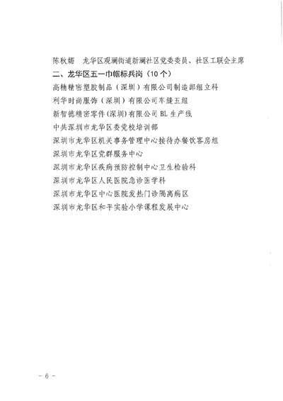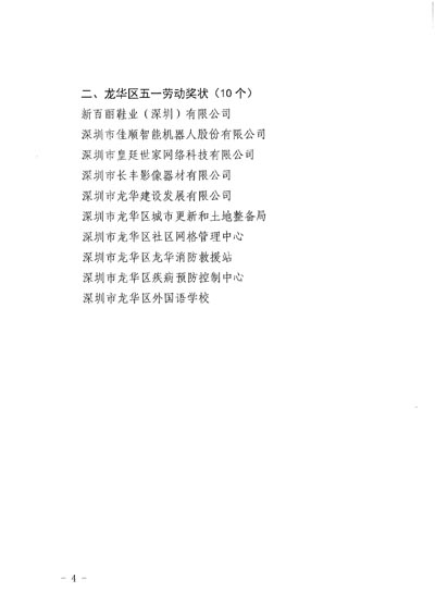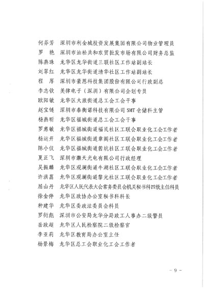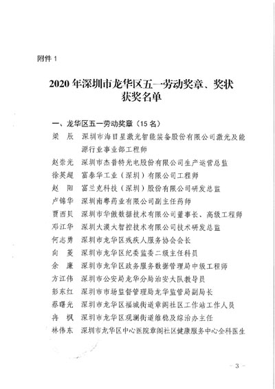 深圳市龍華區(qū)發(fā)布表彰2020年五一先進(jìn)個(gè)人和先進(jìn)集體通報(bào)